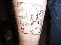 Gregor's TattooGregorNicole and I had talked about getting memorial tattoos shortly after Braedwyn had died. After arriving in Bangkok, we met with an old friend, Gar, who is heavily tattoed and asked her advice on who we should see to get them done. She suggested Neng, and over the next couple of nights he put together the design of my tattoo based on what I had scribbled on a napkin at the bar.